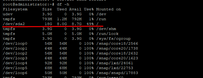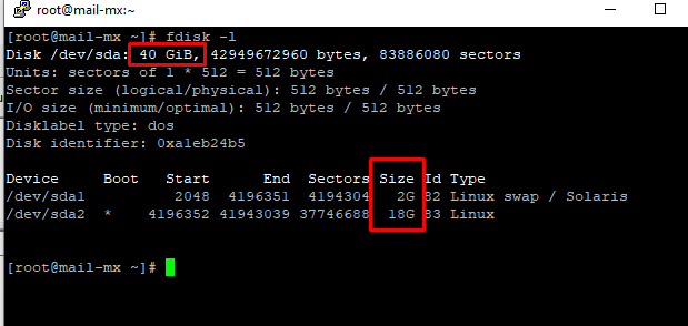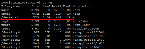 Diskin 80 GB olduğunu “df -h” komutu ile teyit edebilirsiniz.